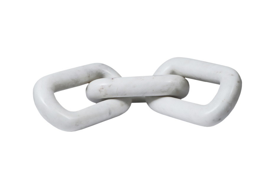 Nodo decorativo di marmo bianco, con tre maglie perfetto per arricchire librerie, consolle e coffe table, per aggiungere un tocco scultoreo.