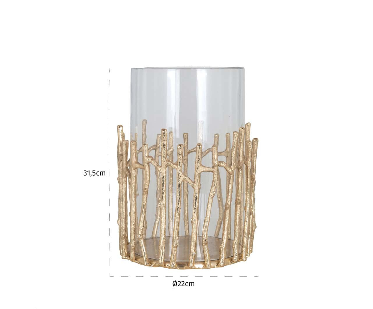 Portacandele in vetro con struttura decorativa in metallo dorato, la finitura oro crea un effetto luminoso che valorizza la fiamma e dona calore all'ambiente. Perfetto su tavoli, consolle e centrotavola, aggiunge un tocco raffinato e contemporaneo agli spazi.