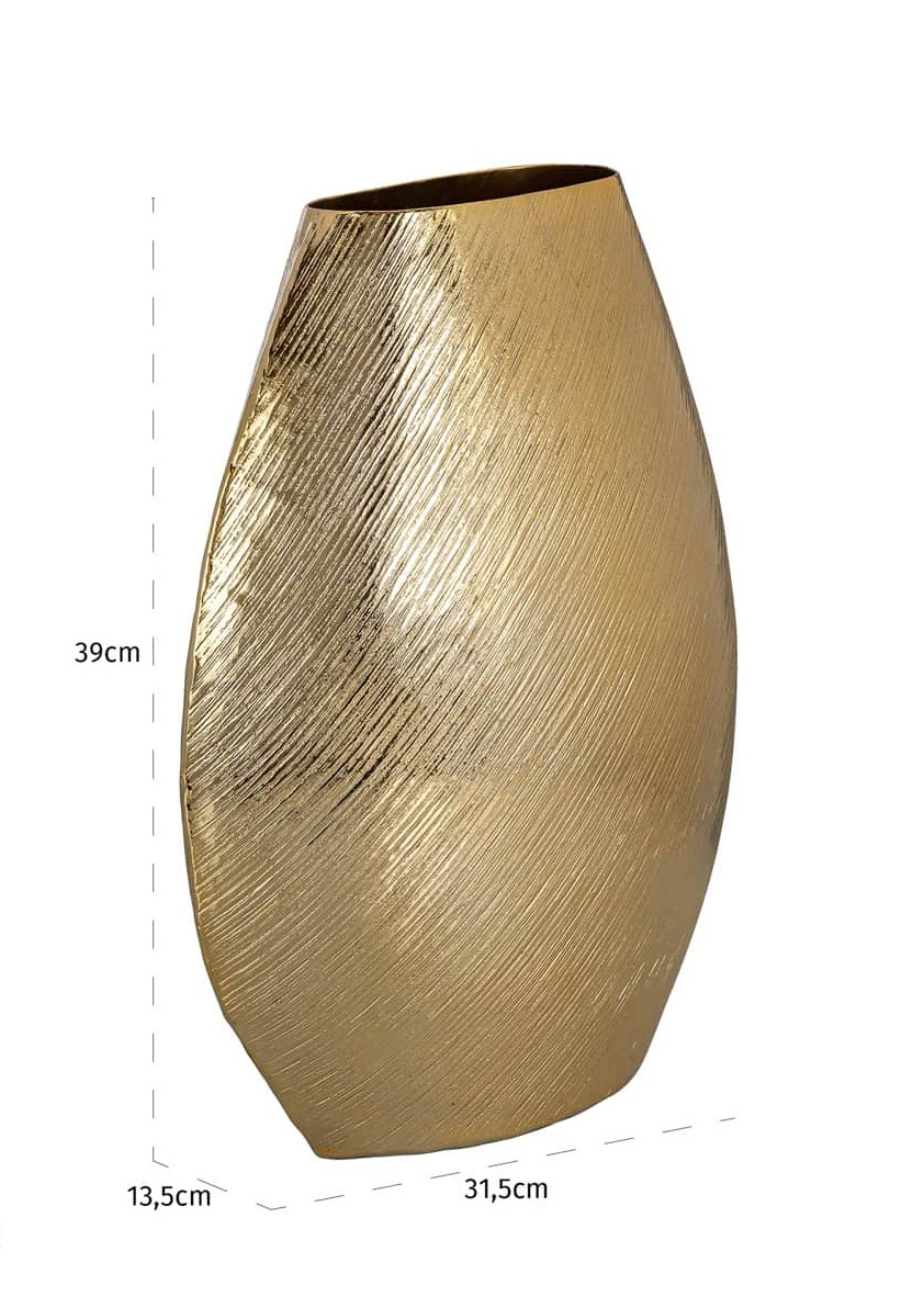 Vaso in alluminio dorato dalla linea morbida e scultorea. Perfetto per aggiungere un tocco elegante sia ad ambienti moderni sia a spazi più classici.
